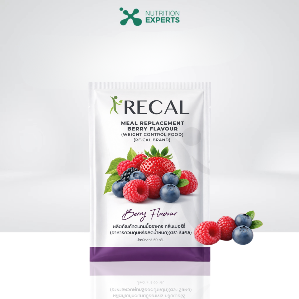 RECAL ผลิตภัณฑ์ทดแทนมื้ออาหารเพื่อควบคุม หรือลดน้ำหนัก สูตรครบถ้วนโปรตีนสูง รสเบอร์รี่